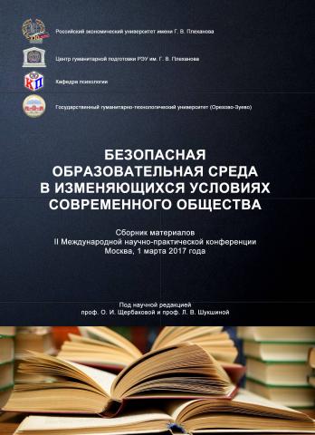 Безопасная образовательная среда в изменяющихся условиях современного общества : сборник материалов II Международной научно-практической конференции (г. Москва, 1 марта 2017 г.) / ФГБОУ ВО «РЭУ им. Г. В. Плеханова» ; каф. психологии Центра гуманитарной подготовки РЭУ им. Г. В. Плеханова; ГОУ ВО МО «ГГТУ» ; под науч. ред. проф. О. И. Щербаковой и проф. Л. В. Шукшиной. — Саранск : Издатель Афанасьев В. С., 2017. — 140 с.