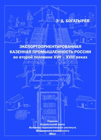 Экспортоориентированная казенная промышленность России во второй половине XVII — XVIII веках / Э. Д. Богатырев ; Издат. центр ИСИ МГУ им. Н. П. Огарева. — Саранск : Афанасьев В.С, 2010. — 280 с.