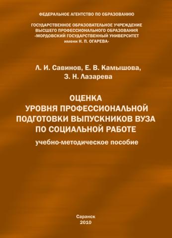 Оценка уровня профессиональной подготовки выпускников вуза по социальной работе : учебно-метод. пособие / Л. И. Савинов, Е. В. Камышова, З. Н. Лазарева ; под общ. ред. Л. И. Савинова. — Саранск : Афанасьев В. С., 2010. — 200 с.