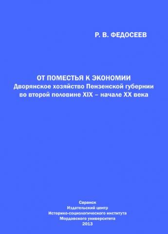 От поместья к экономии. Дворянское хозяйство Пензенской губернии во второй половине XIX — начале XX века / Р. В. Федосеев. — Саранск : Афанасьев В. С. ; Издат. центр ИСИ МГУ им. Н. П. Огарева, 2013. — 146 с.