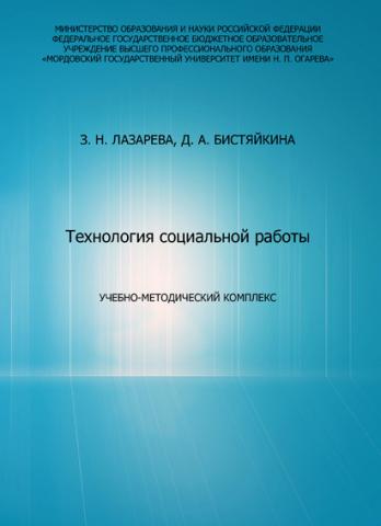 Технология социальной работы: учебно-методический комплекс : учебно-методическое пособие / З. Н. Лазарева, Д. А. Бистяйкина. — Саранск : Издатель Афанасьев В. С., 2014. — 80 с.